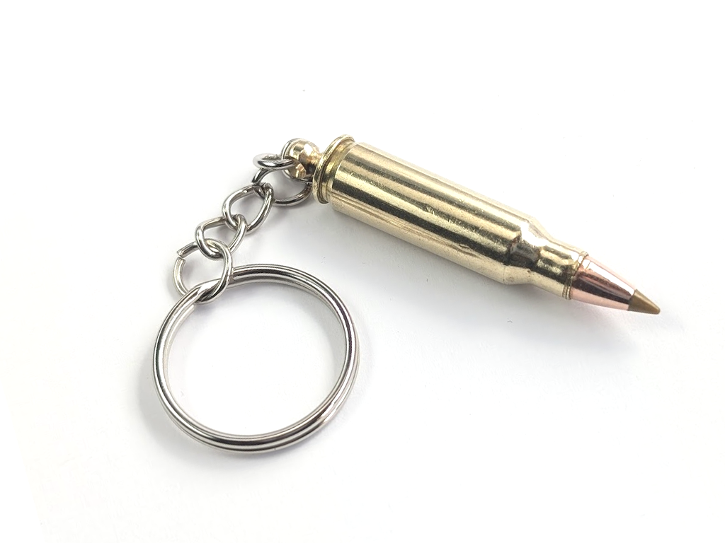 Klíčenka vyrobená z mosazného náboje .221 Remington fireball s originální PT střelou
