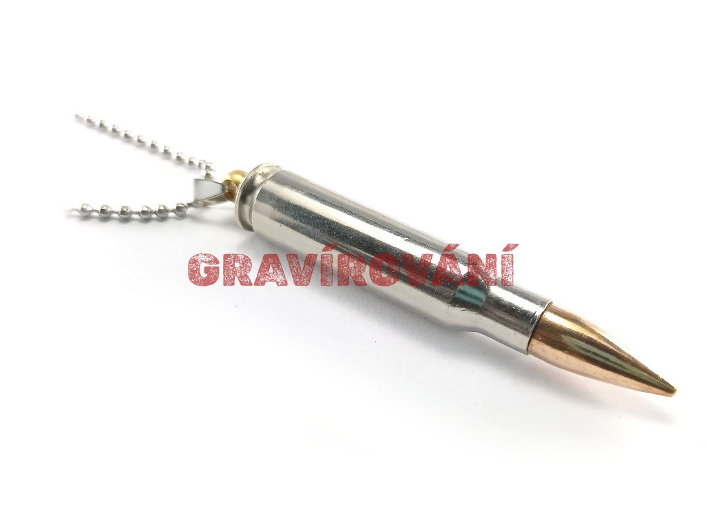 Nechte si vygravírovat náhrdelník z puškového náboje z naší nabídky. Aktuálně můžete nechat gravírovat na následující puškové náboje (pro parametry konkrétní nabídky klikněte na název):