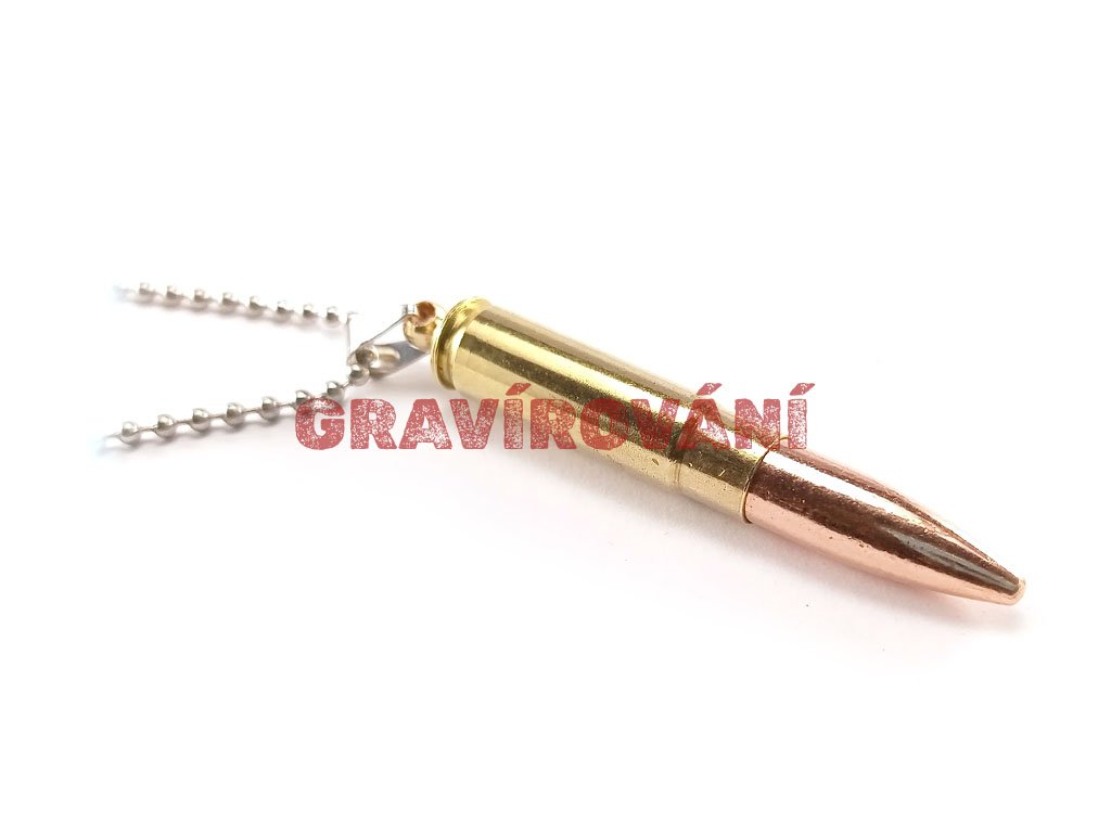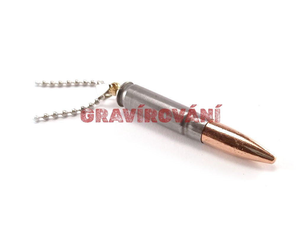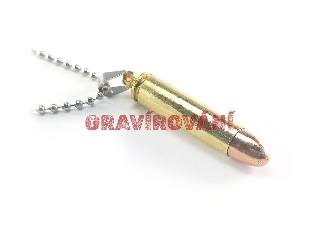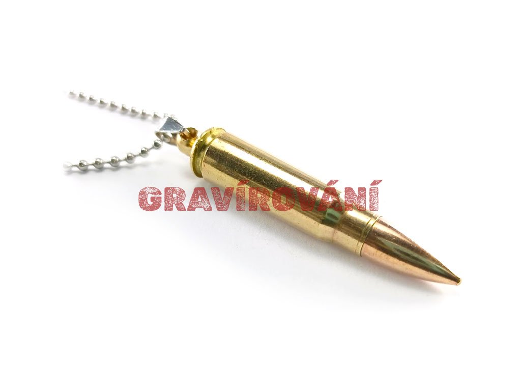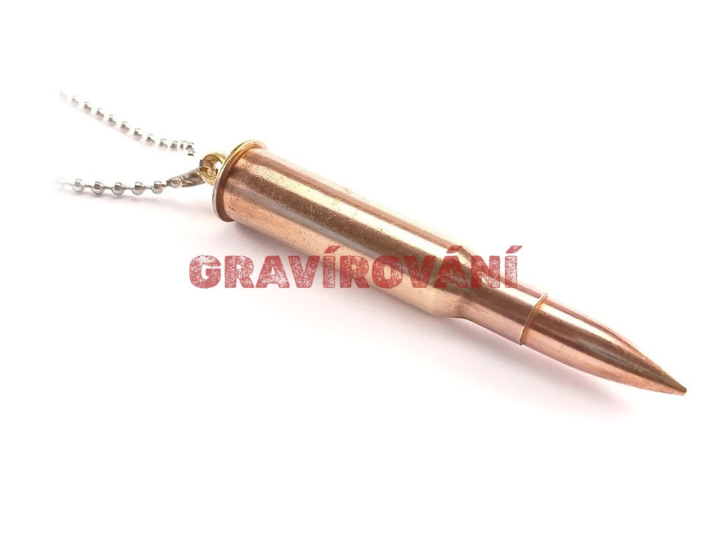 Náhrdelník vyrobený z puškového náboje s laserovým gravírováním na přání zákazníka