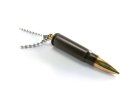 Náhrdelník vyrobený z mosazné nábojnice .223 Remington nebo 5,56 x 45 NATO s FMJ poměděnou střelou na řetízku ve stylu US DOG TAG